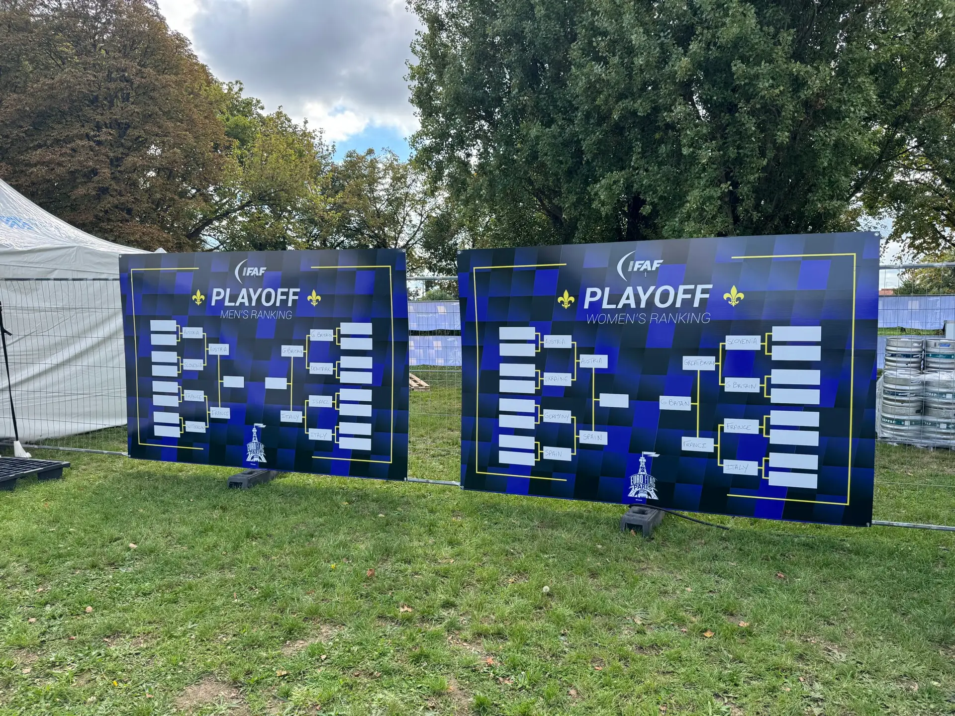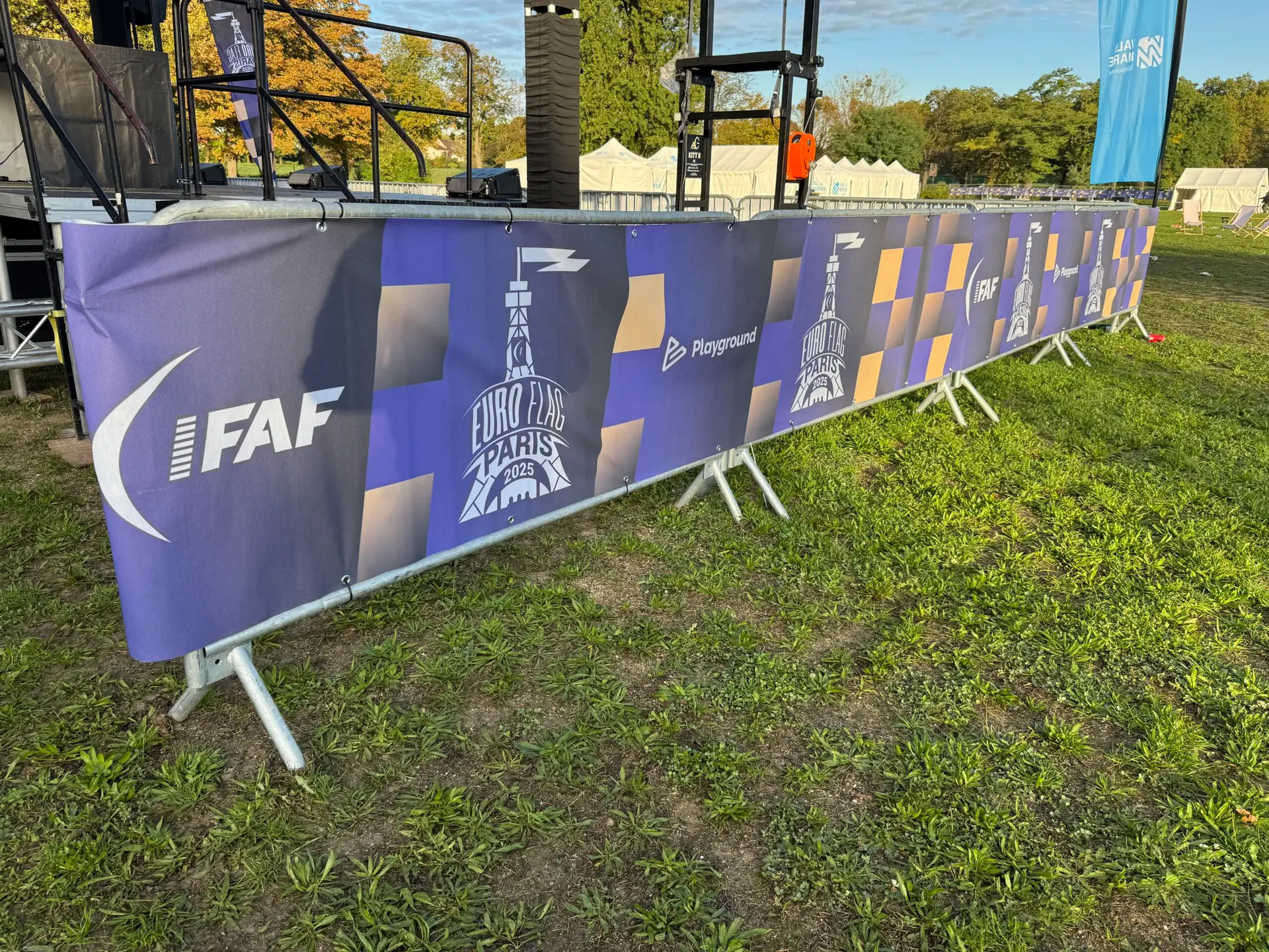 Fin septembre 2025, s’est tenu au Parc Interdépartemental de Choisy (Val-de-Marne) le championnat d’Europe IFAF de Flag Football. Hurrah assurait l’ensemble de la signalétique ainsi qu’une partie du décor.